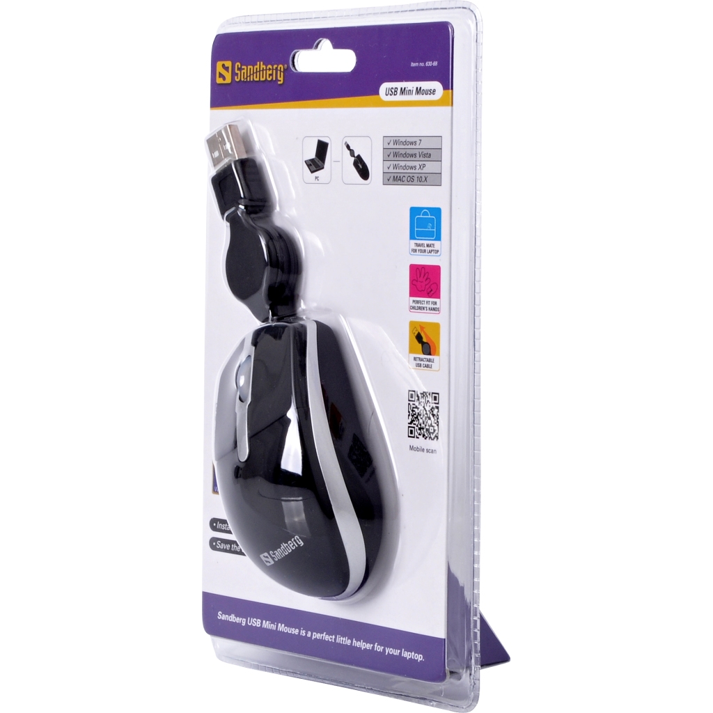 Sandberg USB Mini Mouse is a perfect little helper for your laptop as it is much faster to work with than the laptop’s integrated pointing device. The mouse barely takes up any space in your bag and the retractable USB cable means you don’t have any cable clutter. Contrary to more expensive wireless alternatives, you are guaranteed never to run out of power with this cabled mouse. You thus also avoid the hassle and expense of replacing batteries. The mouse is also suitable for children’s small hands.