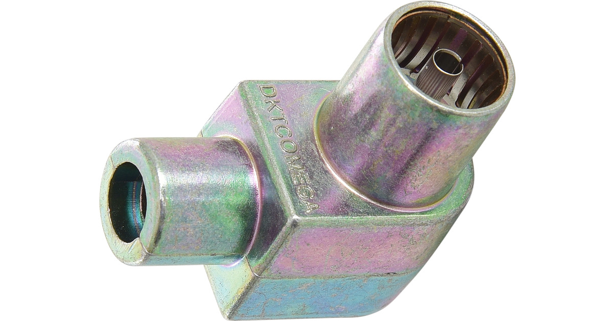 Aerial connector for fitting to the end of an aerial cable. External screw terminals avoid the need for soldering. The connector is angled at 90 degrees so that the cable does not stick up in the air.
