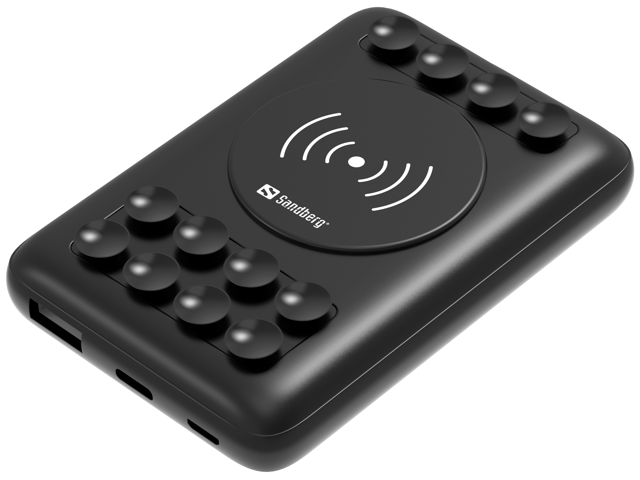 Sandberg Powerbank 10000 Wireless 10W je veoma pametni powerbank sa nekoliko funkcija punjenja. Qi kompatibilni smart telefoni mogu da se pune u potpunosti bežično tako što stavite telefon na ploču za punjenje na vrhu powerbanka. Uz to, poseduje i QC 3.0 USB-A i USB-C ulaz za punjenje putem kabla ukoliko bude potrebno. Powerbank je opremljen snažnim vakumskim držačima koji čuvaju smart telefon tako da ne može da se odvoji, npr. tokom bežičnog punjenja u vašem džepu.